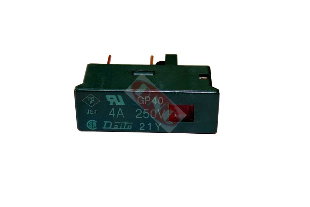 Daito GP40 fuse (alarm). The Daito fuse is rated at 4.0 amp at 250 volt AC/DC green fuse with flag alarm indicator for when it blows. DNC try to carry extensive stocks of fuses whether alarm or clearup manufactured by Daito, Fuji, Hinaode, Kyosan and many other manufacturers.