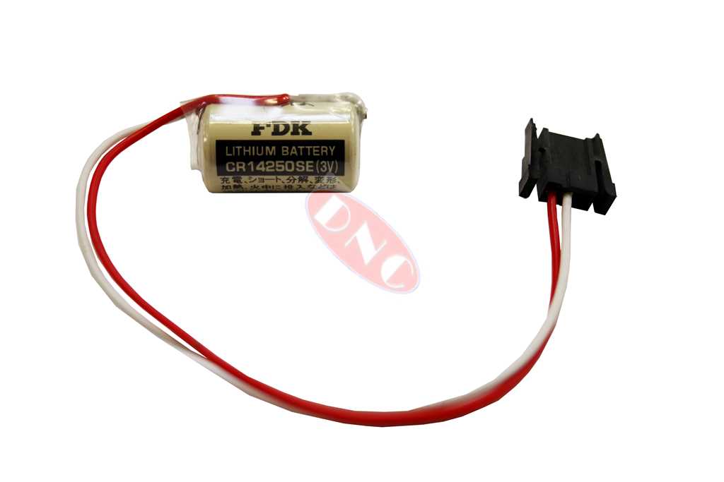 FDK CR14250SE battery (BRAND NEW). The sanyo cylindrical lihium battery is a 3 volt cell with cable into 3 pin connector. This battery uses SANYO numbering system due to FDK owning Sanyo’s lthium battery division. The battery has a capacity of 1800mAh and is in a 1/2 AA height configuration beying 26mm * 17mm. The pack backs up PLC (programmable logic controlller) system files for shutdowns.