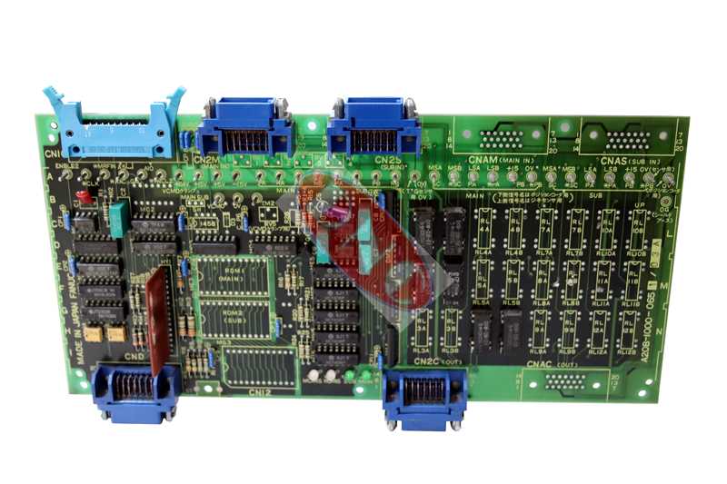 Fanuc A20B-1000-0651 spindle switching cont CTK. Fitted on more sophisticated AC spindle servo units; including A06B-6055, A06B-6059, etc. This switching circuit switches between a MAIN input on CN2M and SUB input CN2S outputting on CMD or CN2C. Interfacing with the drive on CN10.