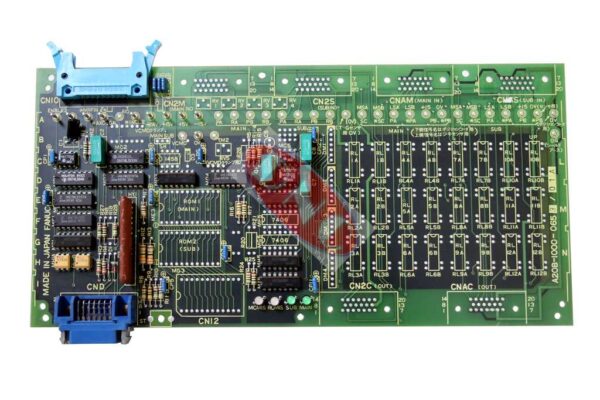 Fanuc A20B-1000-0653 spindle switching cont CTK. Fitted on more sophisticated AC spindle servo units; including A06B-6055, A06B-6059, etc. Interfacing with the drive on CN10.