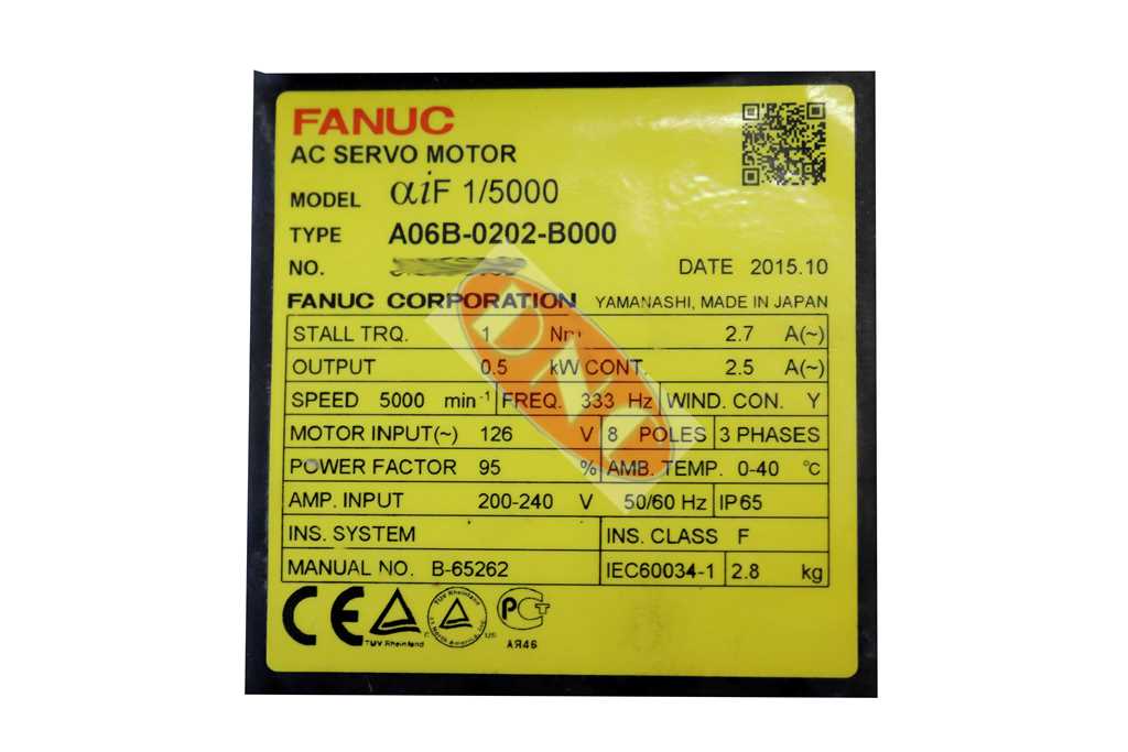 Fanuc A06B-0202-B000 ALPHA Model aiF1/5000 servo motor. This motor series stats are the following: 1Nm TRQ, 0.5kW, 126V, 333Hz, 2.7A, Max 4000 RPM motor. Tapered shaft and standard seals fitted. This model aiS1/5000 AC servo motor was fitted with ABS absolute a1000iA encoder feedback.