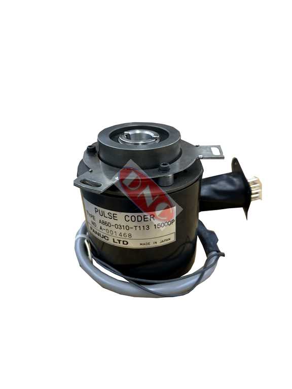 Fanuc A860-0310-T113 Encoder. This pulse coder unit is a first generation hi resolution feedback device capable of 15000 pulse coder that fits on later FANUC AC servo motors. Such as the 5S, 30S and the encoder is has the Bx63 ending on the FANUC servo motors. The encoder can have an alternate ordering part number of A290-0561-V563.