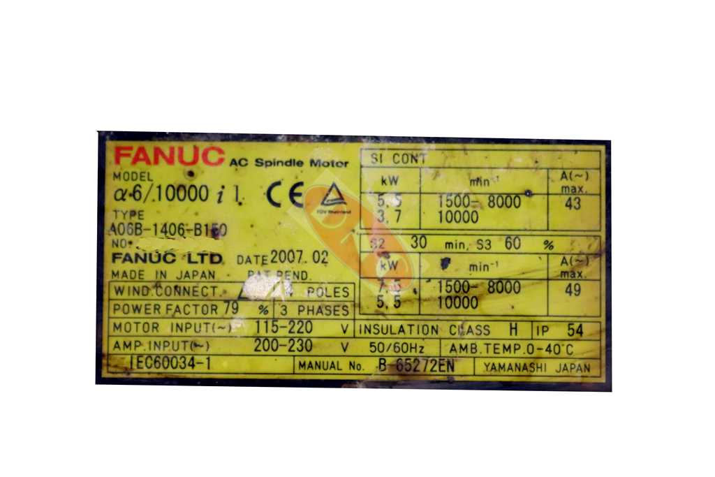 Belonging to the a6/10000i series ALPHA spindle motor fitted with standard feedback MZi sensor. This motor normally runs with earlier 6111 and 6112 series amps or the latter ai versons; resultingly 6141 and 6142 series. Controlled from late generation 16i-B, 18i-B, 21i-B, 0iB and 0iC CNC control series.